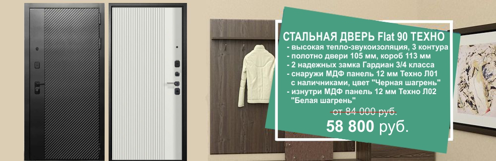 Акция на готовые двери Гардиан Flat 90 Техно с высокой тепло-шумоизоляцией и МДФ панелями Техно 12 мм с двух сторон и стильной черной фурнитурой на квадратной основе. Количество дверей ограничено.