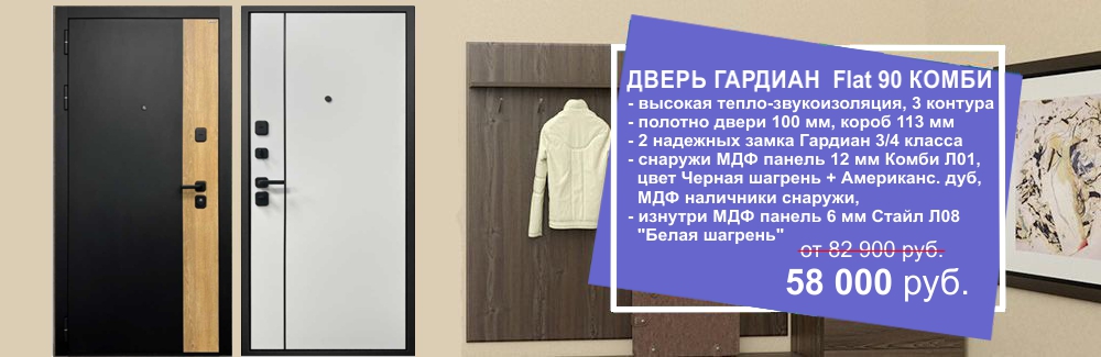 Акция на готовые двери Гардиан Flat 90 Комби с высокой тепло-шумоизоляцией, ламинированными МДФ панелями с двух сторон и стильной черной фурнитурой на квадратной основе. Количество дверей ограничено.