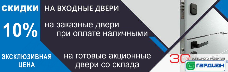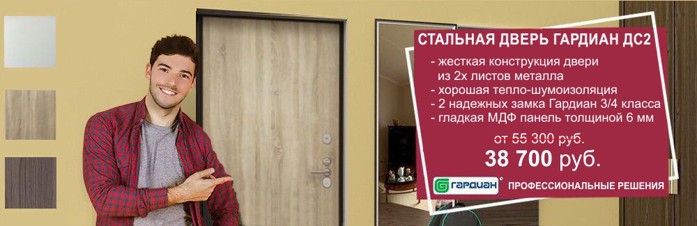 Акция на готовые входные двери Гардиан ДС2 с гладкой панелью 6 мм (цвет на выбор) и двумя надежными замками Гардиан высокой секретности. Количество дверей на складе ограничено.
