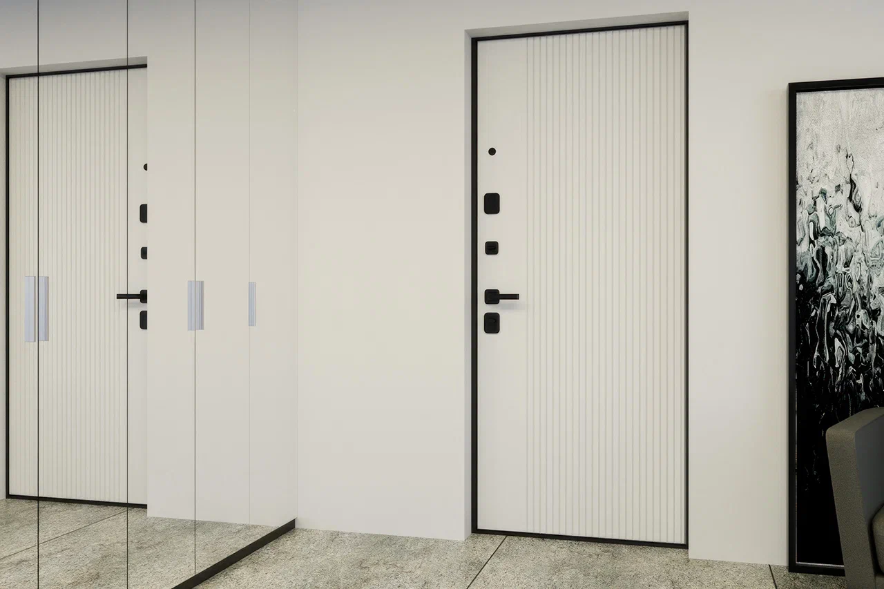 Стальные двери Гардиан Flat 90 Техно - надежные, красивые и функциональные входные металлические двери с двумя декоративными МДФ панелями, с увеличенной толщиной полотна до 105 мм, закрытым утепленным коробом 100 мм и стильной черной фурнитурой. Двери имеют надежную защиту от взлома и вскрытия, повышенную теплоизоляцию, соответствуют всем требованиям, предъявляемым к современной входной металлической двери.