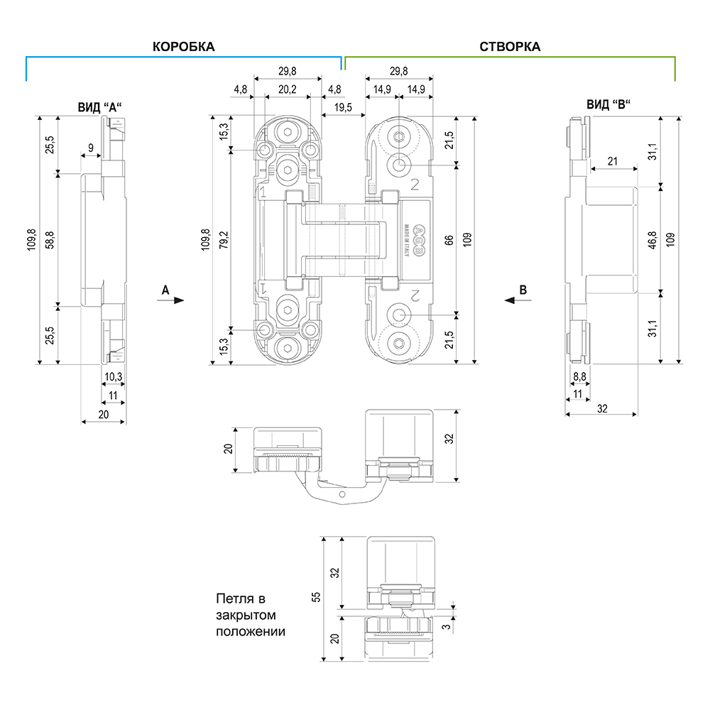 Скрытые межкомнатные петли Eclipse 2.0 - универсальная петля скрытой установки для левых и правых дверей, с уменьшенной толщиной до 20 мм в коробку. Регулируется в трёх плоскостях: по горизонтали ±1,5 мм, высоте ±2 мм и притвору ±1 мм.