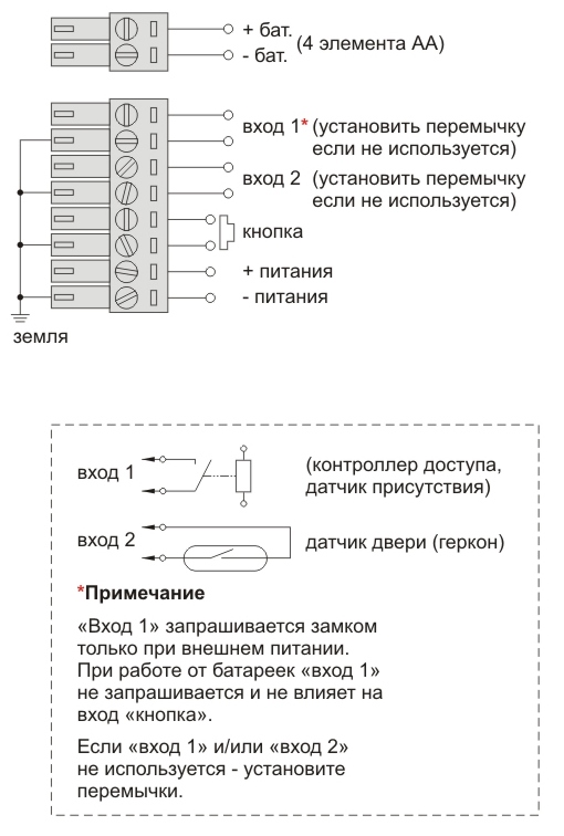 • Работа от батарейного питания возможна при использовании механических кнопок «выход» либо электронных кнопок с энергосберегающим режимом.