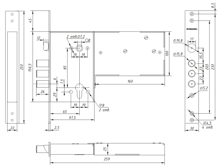 • Габариты: 156.5х97.5х22 мм